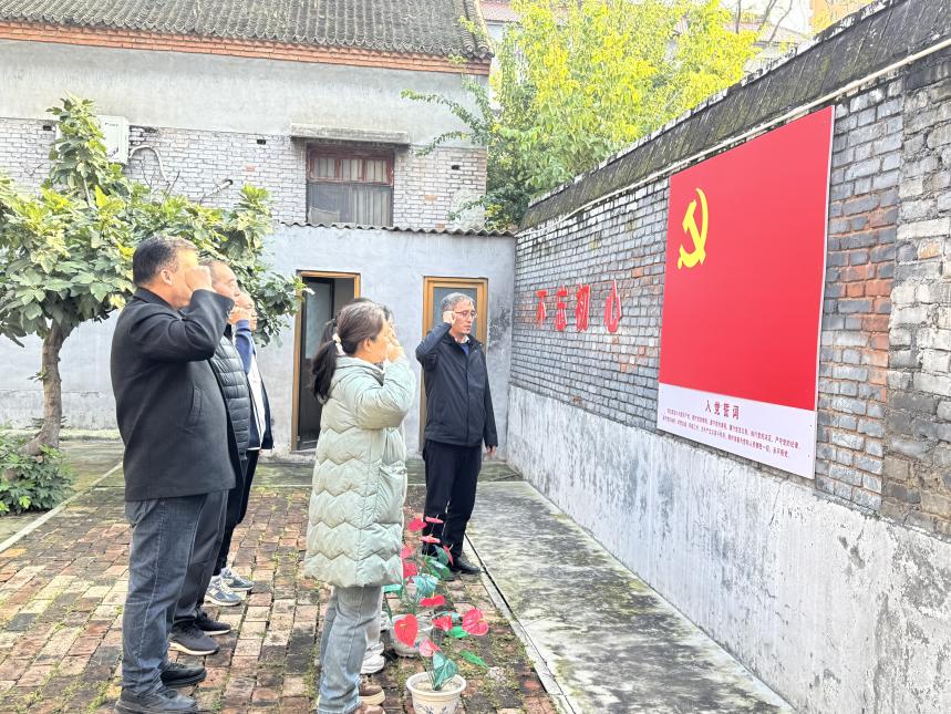 活动在庄严的氛围中拉开序幕。在旧址前,党支部书记高新涛同志带领全体党员,面向党旗,高举右拳,目光坚定,齐声重温入党誓词。“我志愿加入中国共产党……”铿锵有力的誓言穿越时空、回荡耳畔,传递出党员们对党的忠诚与为事业奋斗的坚定决心。