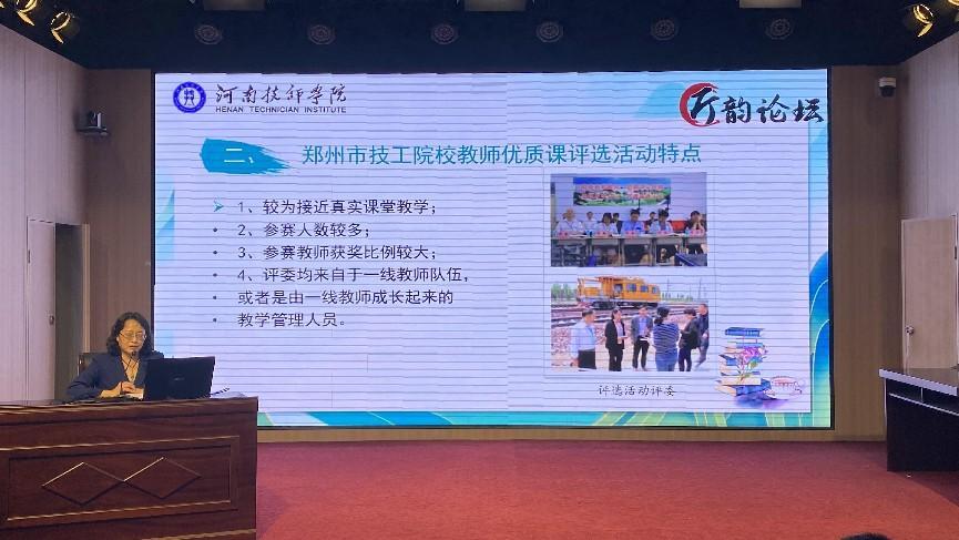 首先,李老师结合自己多年的从教经验,特别是参加历次郑州市优质课经验,通过大量详实案例分析,跟大家分享了优质课比赛的基本概况,以及备赛、参赛的相应技巧。并从政策导向、教学设计、教学展示、教学环境、团队组建、策略方法及评价反思这八个方面进行深刻的阐述。她指出,教学过程中选题时应注意与学科前沿、时下热点、国家战略相契合,做到“凝练特色,错位选题”;要根据教材特点及教学目标,灵活有效地选择教学方法,教学环节设计科学、完整、紧凑;尤其是要做好课程思政的系统设计,有机融入劳动精神、工匠精神、劳模精神等育人新要求,以及安全教育、专业教育,实现润物无声的育人效果。