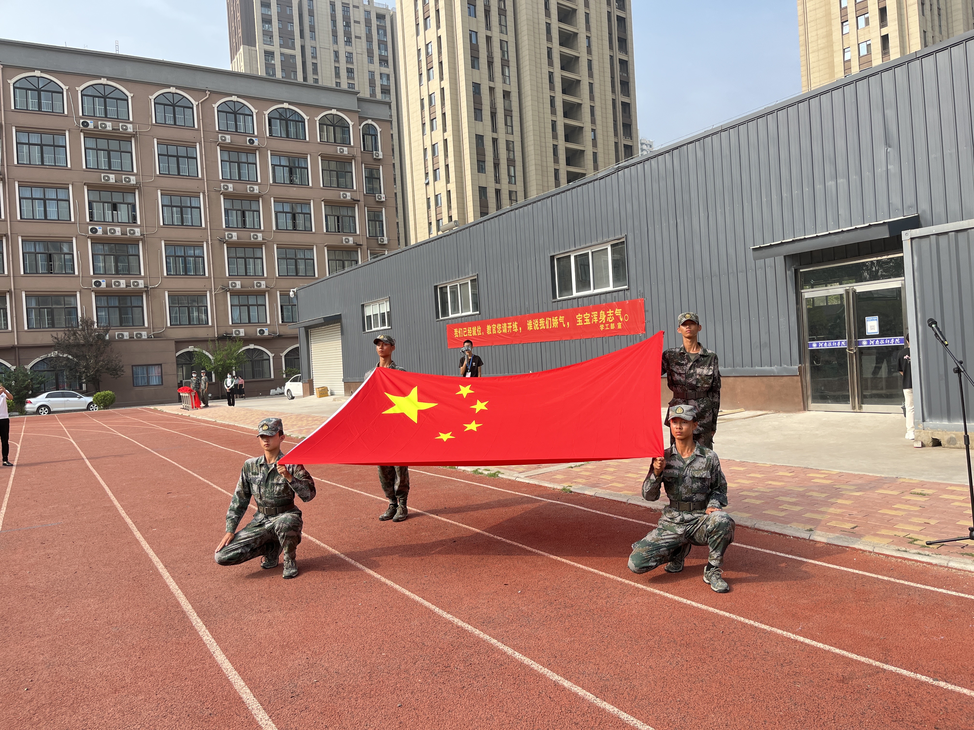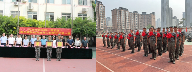 秋风送爽,丹桂飘香。9月3日上午9时,我校新生国防教育成果汇报大会暨开学第一课在西、北两校区同步举行。校领导班子成员出席活动。党政办公室、学工部(校团委)和各二级学院负责同志,学生教官及2022年秋季全体新生参加活动。活动分别由校党委副书记袁巧红、副校长杨伟博主持,校长占江、校党委书记谢风来发表讲话并为全体新生授开学第一课。