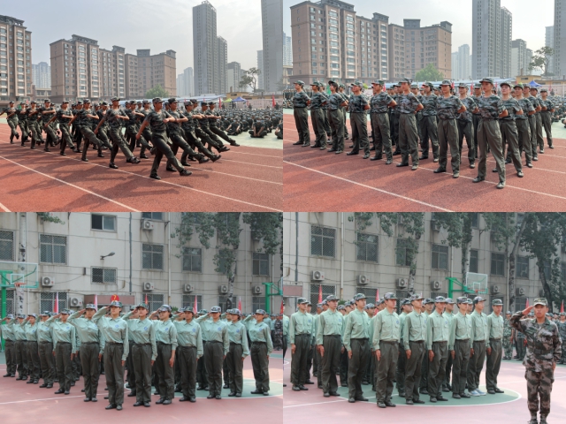 全体新生进行集体军事队列展示,此刻,他们英姿飒爽。步伐坚定整齐,口令铿锵有力;此刻,他们豪情万丈、激情飞扬,智慧与力量折射出绚丽的光芒,彰显我校学子的卓越风采!