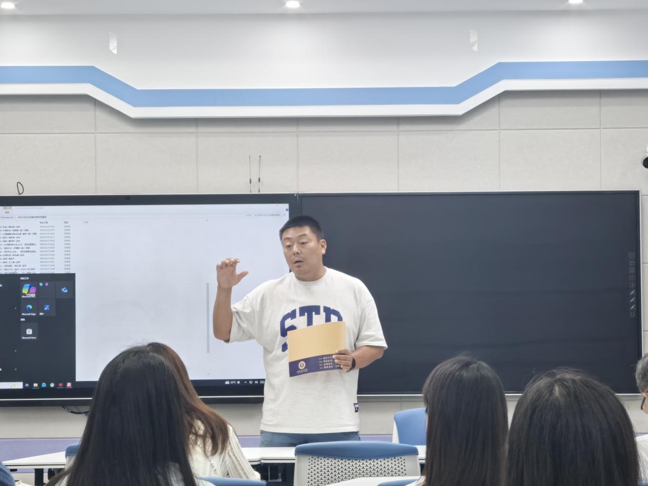 9月16日下午,我校北校区智慧教室内氛围浓厚,一场针对新进教师及督导三类教师的岗前培训在此如期举行。本次培训聚焦教学工作全流程规范,旨在帮助教师快速适应教学岗位、提升教学能力,由公共教学部副部长李焱担任主讲人。