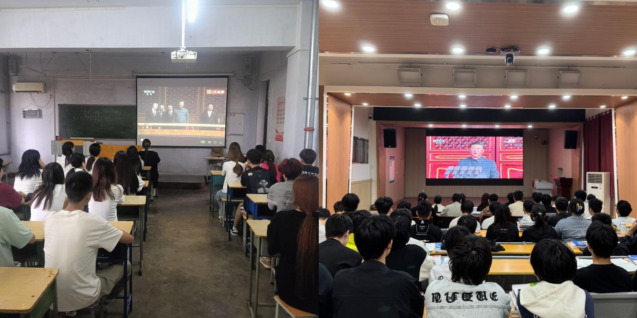 学工部牵头统筹活动整体安排,协调各校区观看场地,联合信息中心完成集中观看会场的网络与设备调试,同步做好学生人数统计与活动材料收集;教务处重点保障上课期间老生的观看组织工作;各二级学院则由班主任、教官牵头,全程负责新生观看。